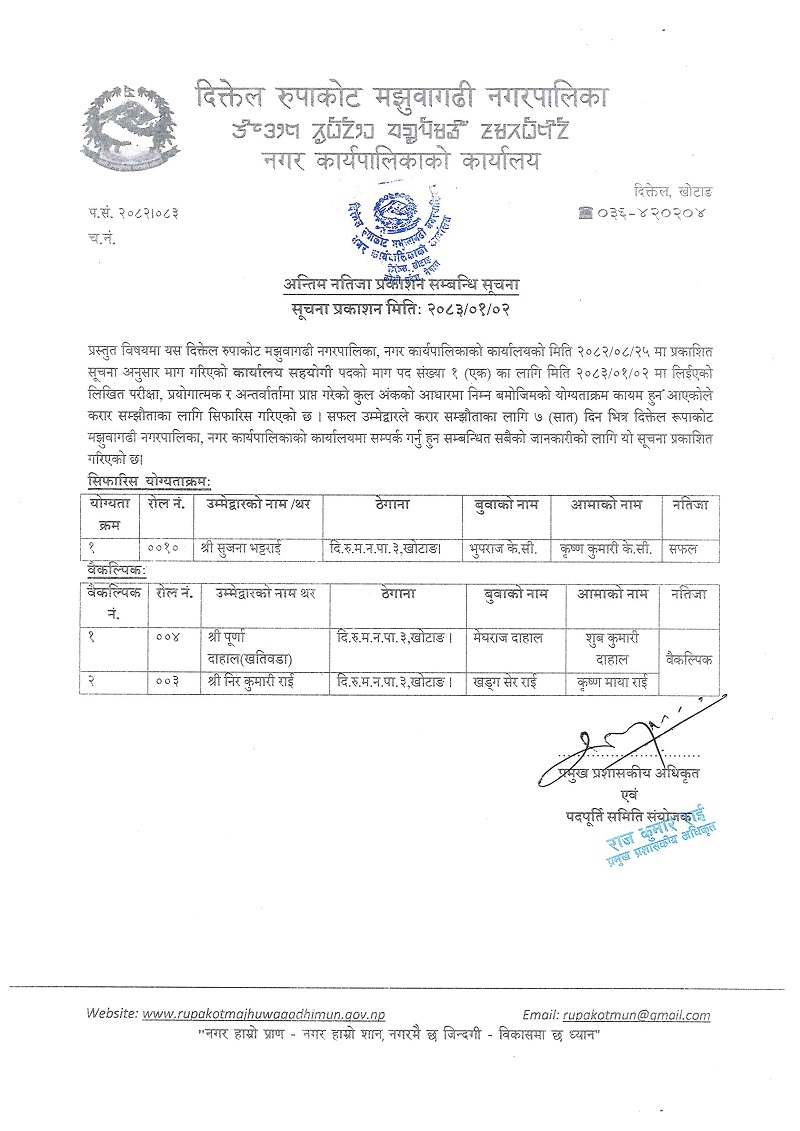 अन्तिम नतिजा प्रकाशन सम्बन्धि सूचना (सूचना प्रकाशन मितिः २०८३/०१/०२)