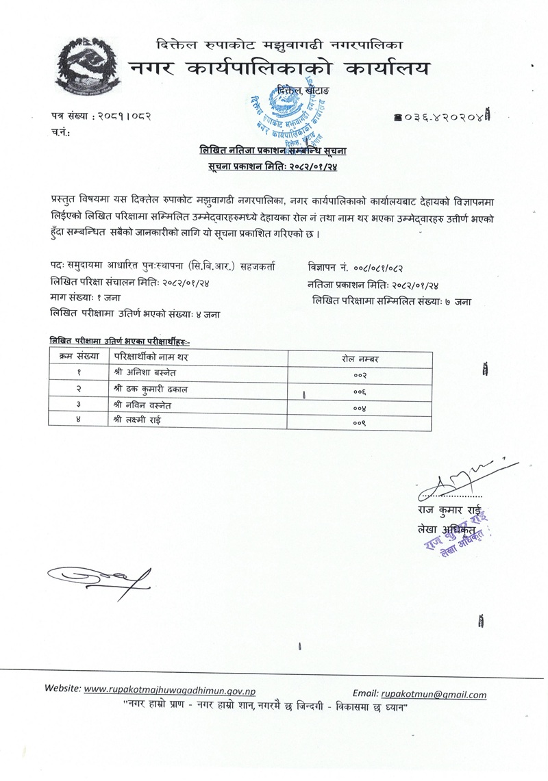 लिखित नतिजा प्रकाशन सम्बन्धि सूचना । (प्रकाशित मिति २०८२।०१।२४)
