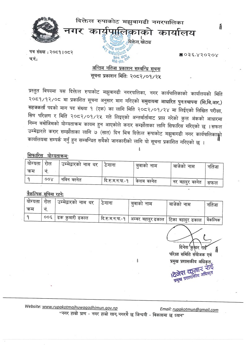 अन्तिम नतिजा प्रकाशन सम्बन्धि सूचना । (प्रकाशित मिति २०८२।०१।२५)