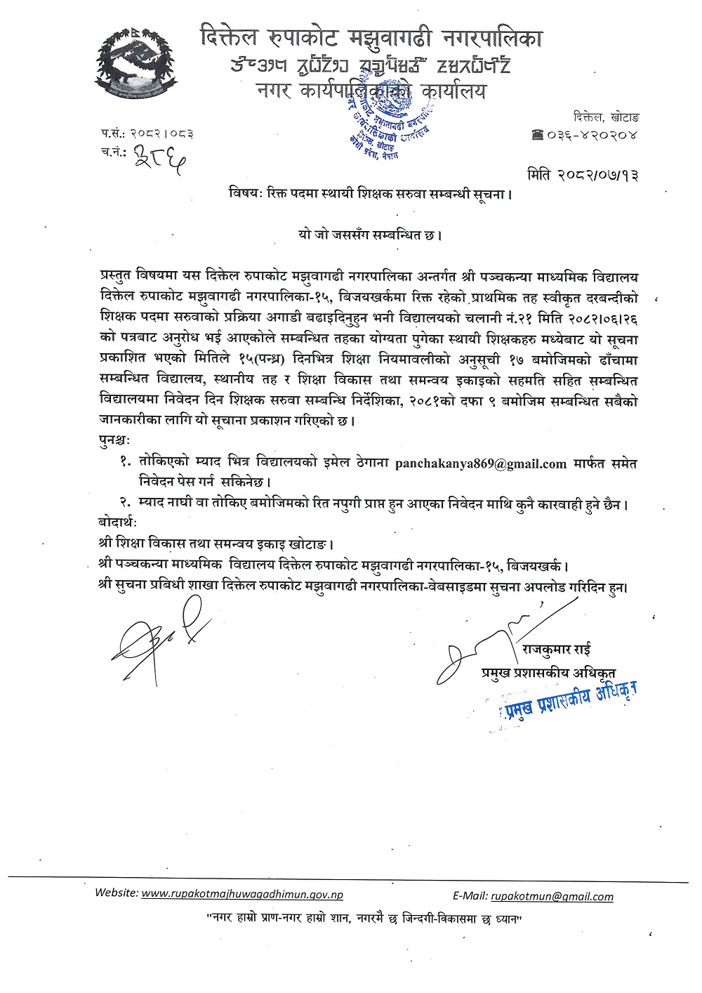 » रिक्त पदमा स्थायी शिक्षक सरुवा सम्बन्धी सूचना । (सूचना प्रकाशित मिति २०८२।०७।१३ गते)