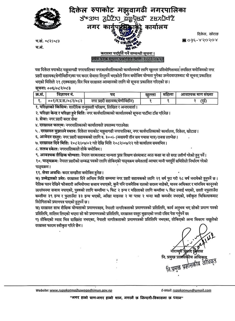 करारमा पदपूर्ति गर्ने सम्बन्धी सूचना। (प्रथम पटक प्रकाशित मितिः २०८२।०७।०२)