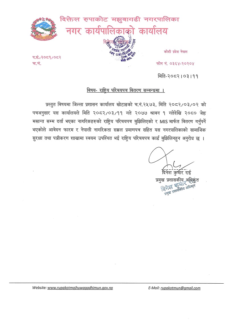 » राष्ट्रिय परिचयपत्र वितरण सम्बन्धि सूचना । (मिति २०८२।०३।११)