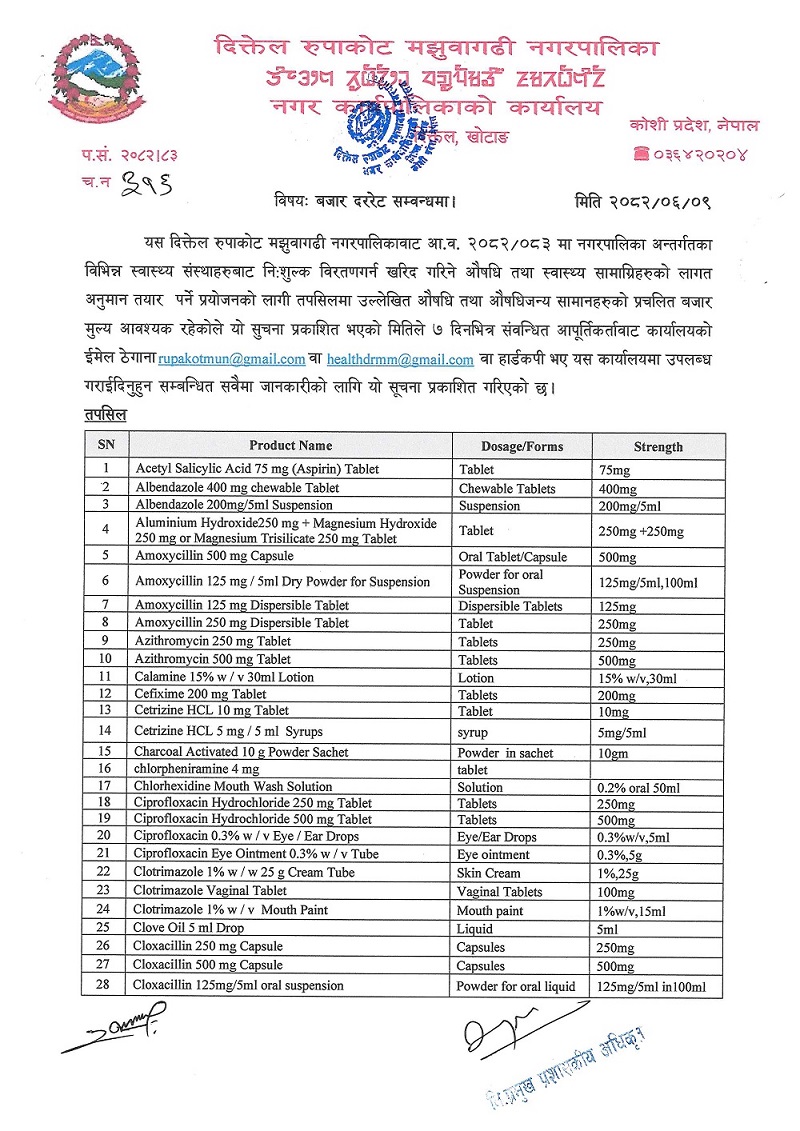 बजार दररेट उपलब्ध गराउने सम्बन्धी सूचना। (सूचना प्रकाशित मितिः २०८२।०८।१५)