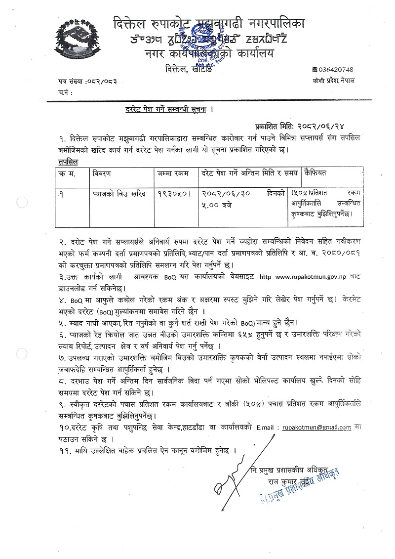 दररेट पेश गर्ने सम्बन्धी सूचना । (सूचना प्रकाशित मिति २०८२।०६।२४ गते )