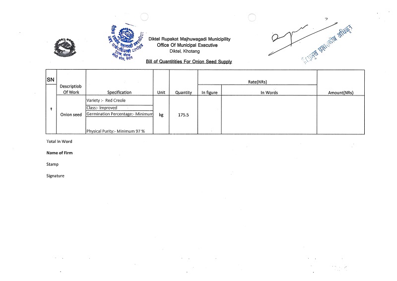 बोलपत्र आह्वान सम्बन्धी सूचना- कालिका भगवती तथा मझुवागढी सौन्दर्यकरण योजना, किरात रोसिहङ्छा साकेला थान सुप्तुलुङ खिम तिनचुला (भवन) निर्माण योजना, च्यानडांडा-सेरा खोला-खानीडांडा एयरपोर्ट सडक स्तरोन्नती योजना।(प्रकाशित मितिः२०८२।०९।०१)