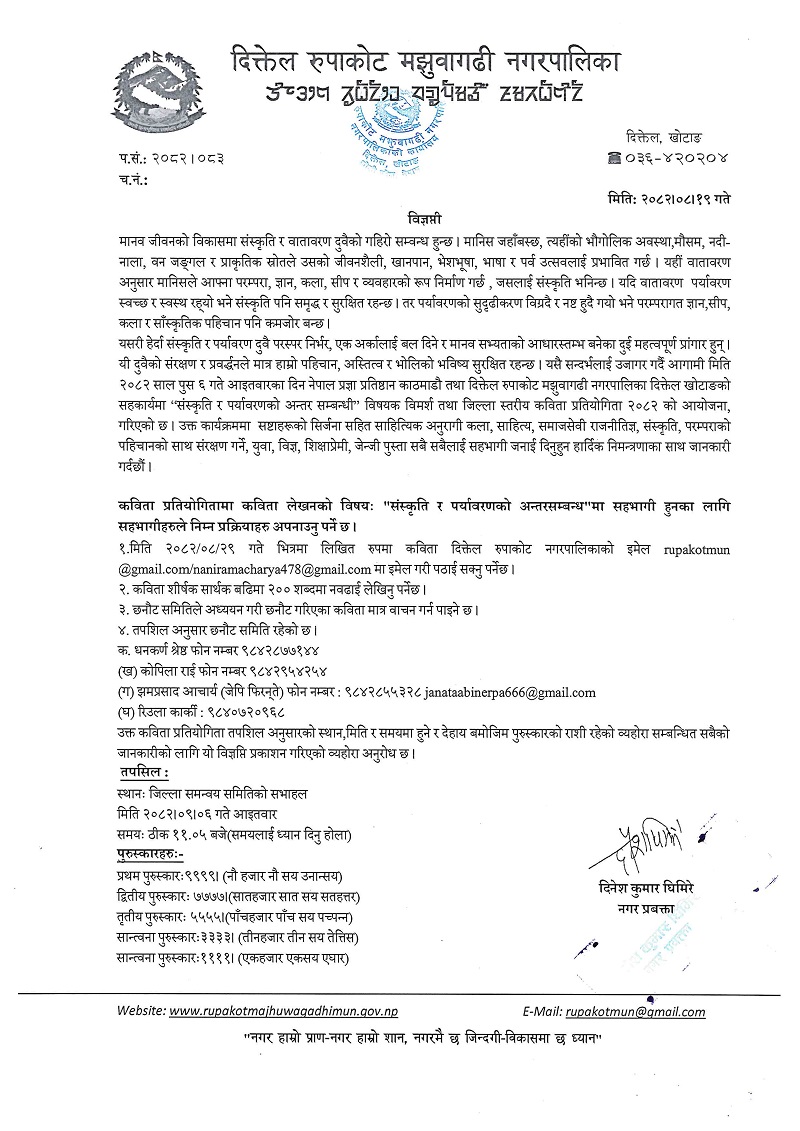 विज्ञप्ती (प्रकाशित मिति २०८२।०८।१९ गते)