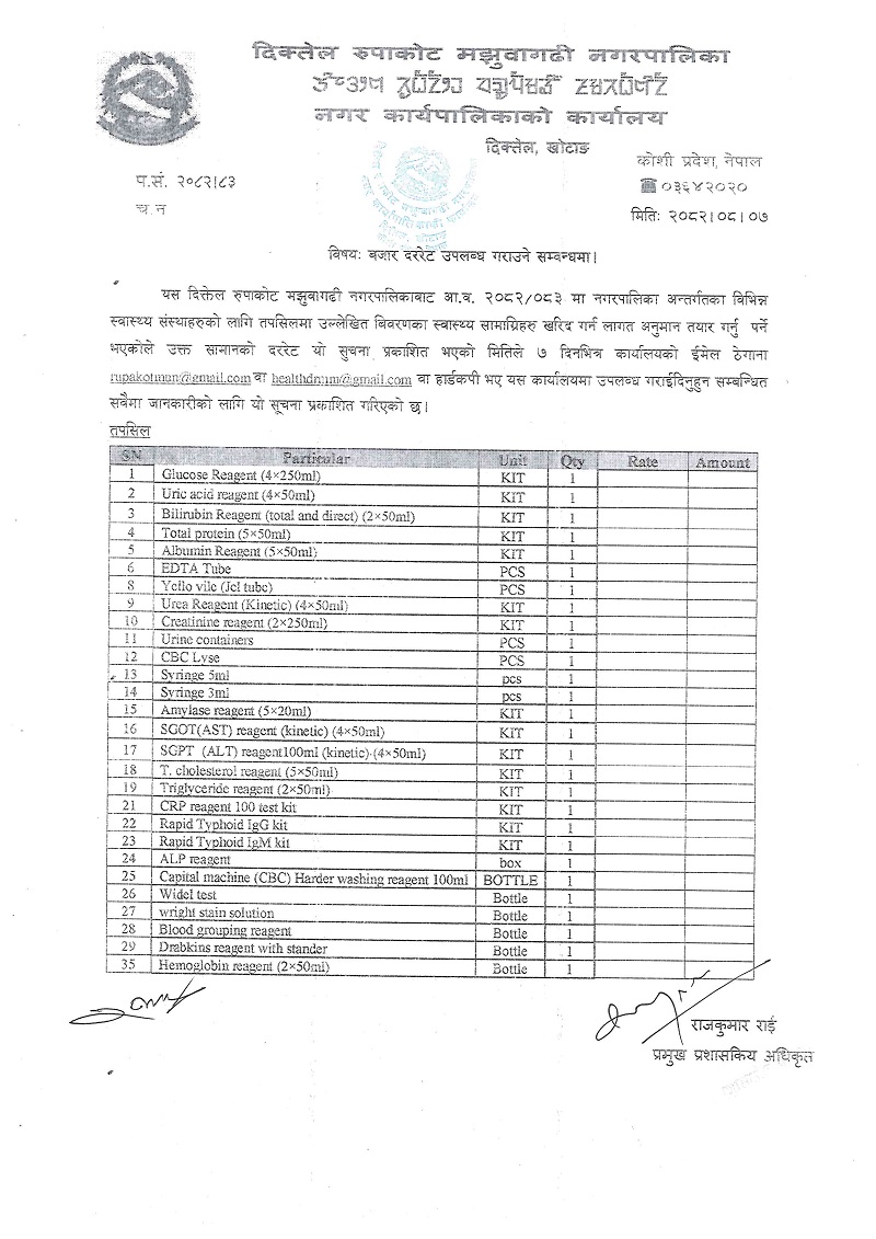 बजार दररेट उपलब्ध गराउने सम्बन्धी सूचना। (सूचना प्रकाशित मितिः २०८२।०८।१५)
