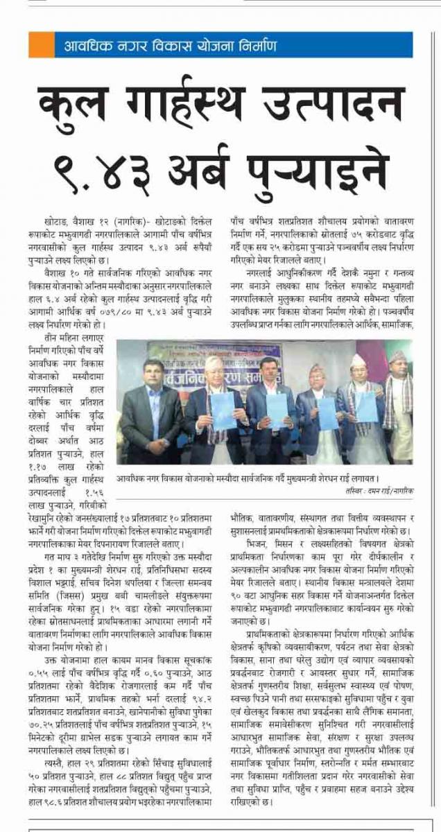 » आवधिक नगर विकास योजना मस्यौदा सार्वजनिक समारोह सम्बन्धी समाचार-नागरिक दैनिक - १३ वैशाख, २०७५