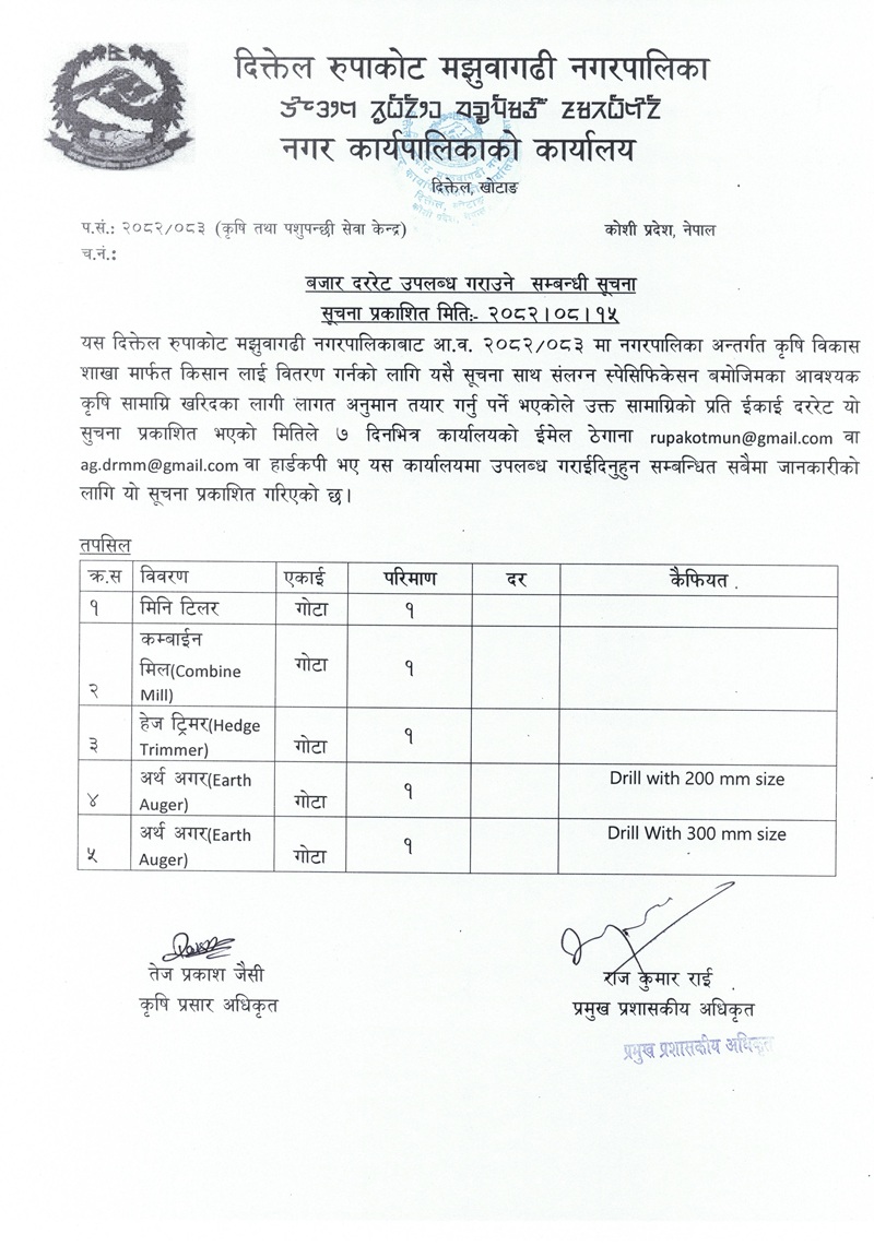 बजार दररेट उपलब्ध गराउने सम्बन्धी सूचना। (सूचना प्रकाशित मितिः २०८२।०८।१५)