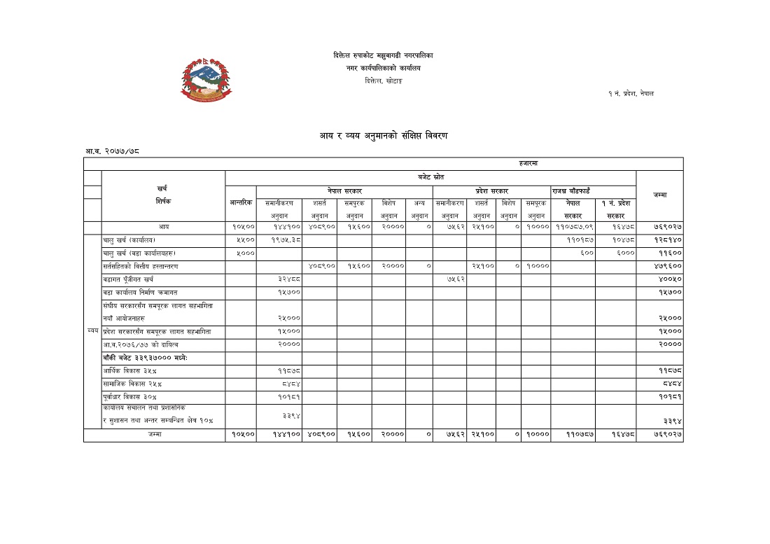 आ.व. २०७७।०७८ को बजेट तथा कार्यक्रमको संक्षिप्त विवरण ।